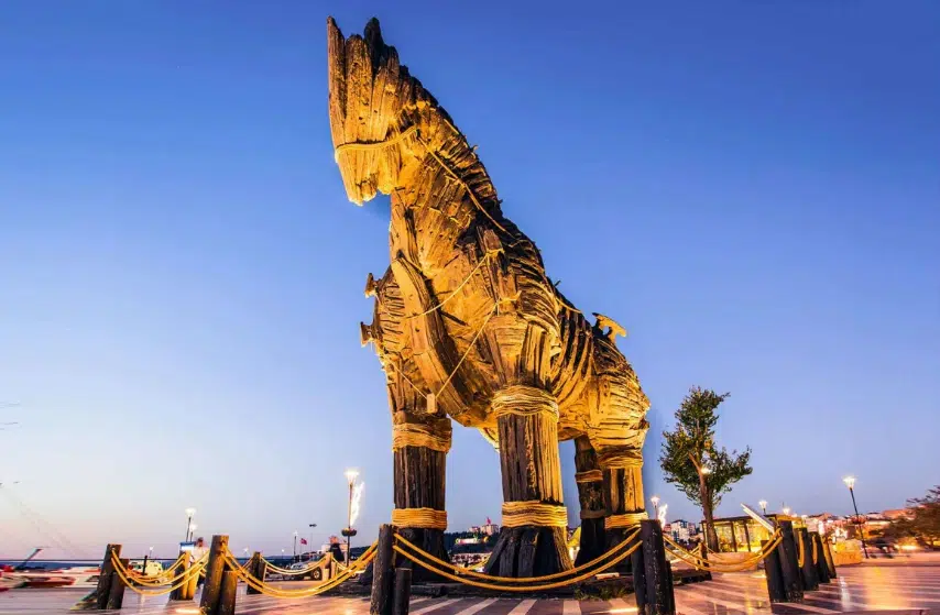 Milattan önce 3200 yılında kurulan Troya dünyanın bilinen en eski ve belki de en ünlü mitolojik medeniyetlerinden biridir. Etkisi günümüzde de devam eden Troya efsanesi halen Hollywood filmlerinin de ana kaynaklarından biri olmaya devam etmektedir. Yaklaşık 3300 yıllık bir tarihe ev sahipliği yapan Troya, Zeus'u kandırdığı için Zeus tarafından Olympus'tan aşağı atılan tanrıça Ate'nin ilk düştüğü yerdir. Kentin kurucusu Tros'un oğlu İlios'tur. Çanakkale yakınlarındaki Dardanos kenti kralı Dardanos'un soyundandır.