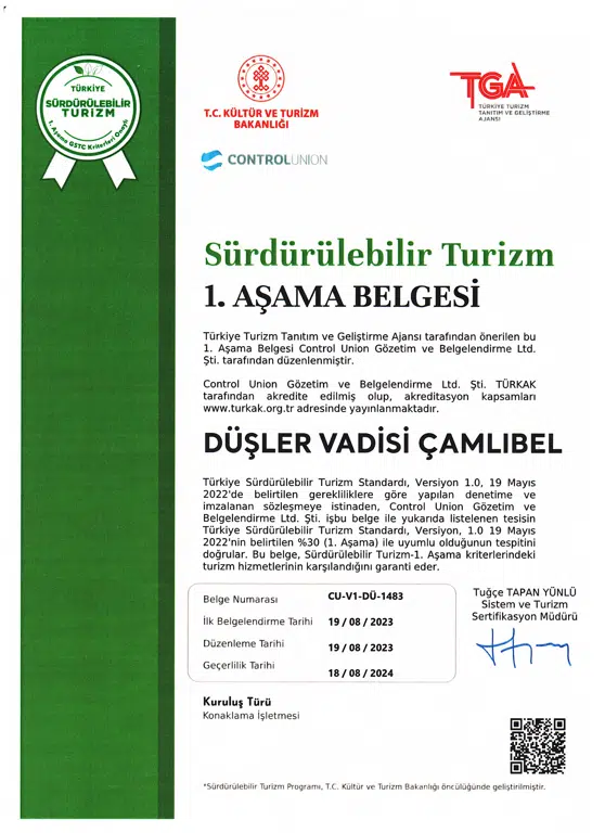 Düşler Vadisi, doğaya saygılı bir tatil deneyimi sunmak için sürdürülebilir turizm anlayışını benimsemektedir. Kazdağları'nın eşsiz doğal güzellikleriyle uyumlu olarak, çevre dostu uygulamalar ve enerji verimliliği sağlamak için sürekli çaba sarf etmektedir. Misafirlerimize doğa ile iç içe, sorumlu bir tatil sunmayı hedefliyoruz, böylece her ziyaret çevremize de katkı sağlar.